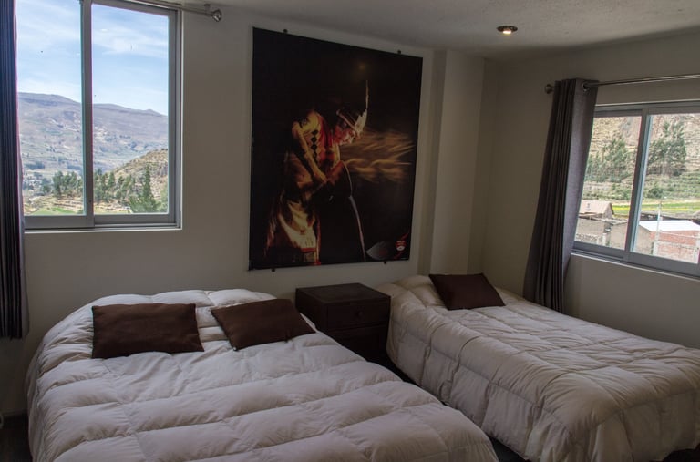 Disfruta de una estancia cómoda en nuestras habitaciones dobles, diseñadas para ofrecerte tranquilidad y vistas espectaculares del Colca, a solo 15 minutos de Chivay.